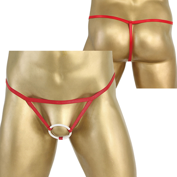 <EROX>男性器をリングに通すという、斬新なデザインが特徴の超セクシーなメンズランジェリー。フロントに視線は集中しがちですが、後ろ姿でも極細のGストリング仕様で見事に男らしさをアピール!こちらのカラーは情熱のレッド。