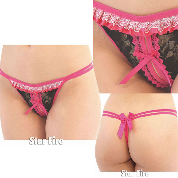 <EROX>クロッチ部分にスリットを入れた、ローズ×黒のセクシーオープンショーツ。