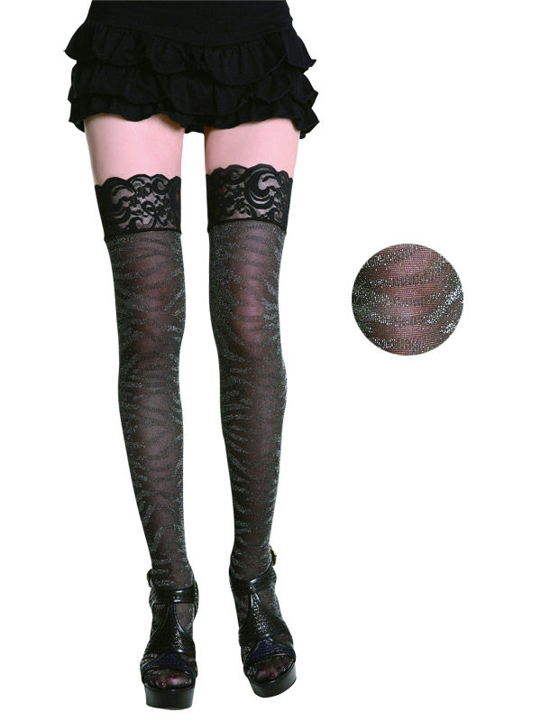 光沢のあるラメ入りのゼブラ柄がインパクト抜群のストッキング。