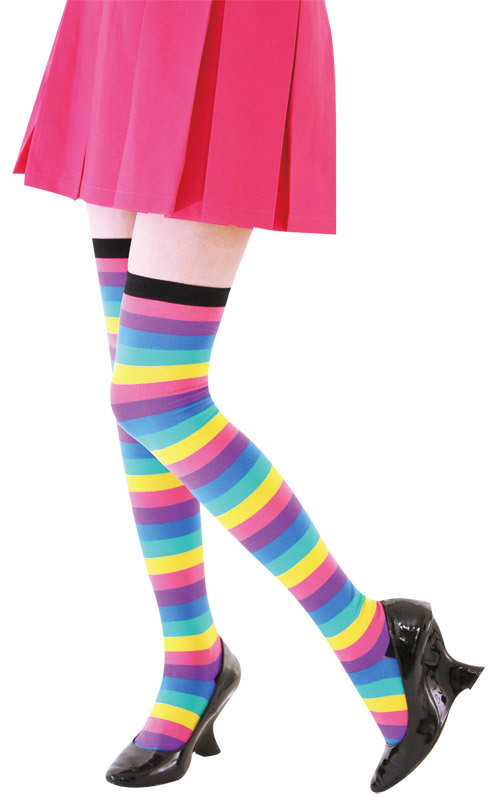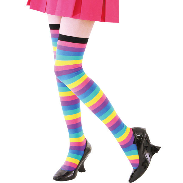これ一足でコーディネートに怖いものなし!元気いっぱいのポップなカラーで注目の的になれる、ボーダー柄ニーハイソックス。