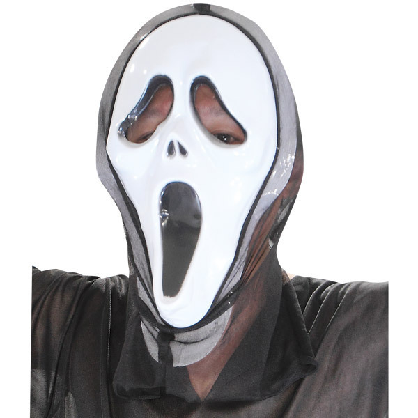 黒いフードに白い顔…!戦慄のデスボイスが聞こえそうなスクリーム風フェイスマスク単品。