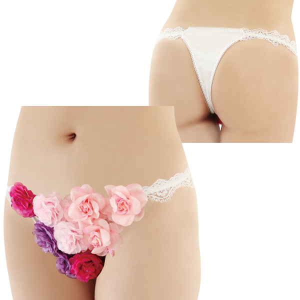 芳しい花の香りが漂ってきそうな立体モチーフでデコレーションしたゴージャスな盛りショーツ!バックのシンプルデザインとのギャップで魅せる、とびきり華やかなセクシーランジェリーです。