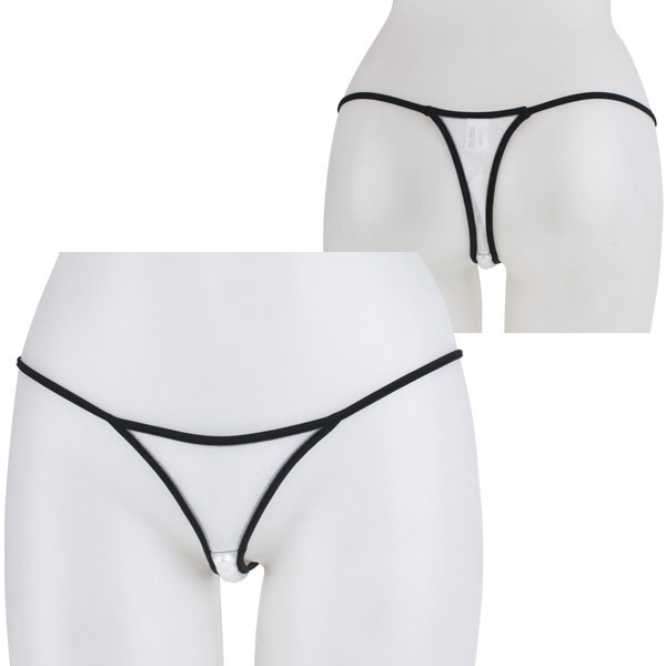 ●ホワイトメッシュ素材●ショーツ全体を細めの黒ストリングで縁取り●クロッチにパール入り●後ろはセクシーなTバック仕様●日本製。