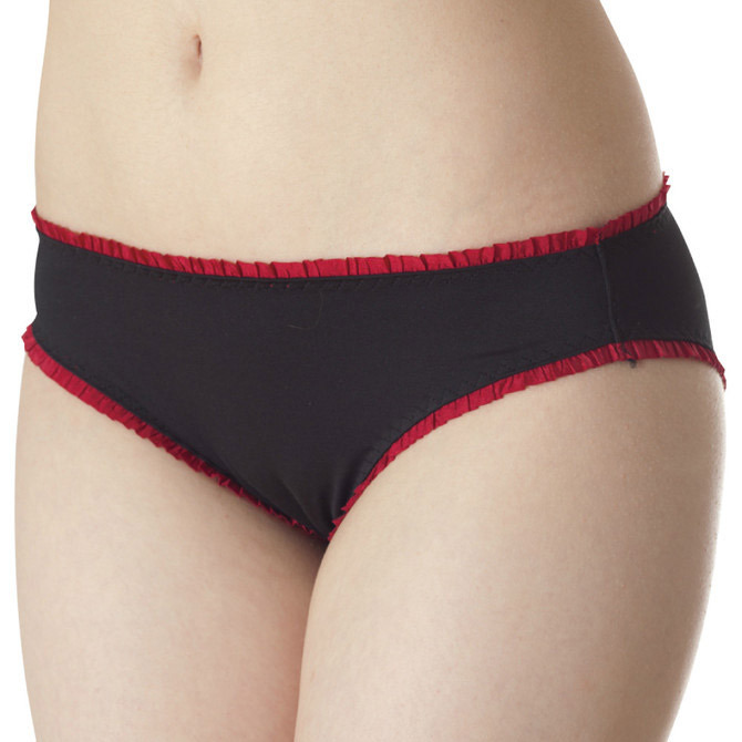 ●デイリーにも使いやすいローライズ●すっきりシンプルなブラックベース●赤ギャザーフリルでパイピング●履きやすいハーフバック。