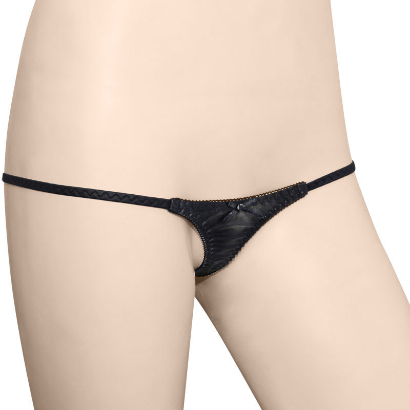 ワレメにグッと食い込むラインが超セクシー!露出度MAXのマイクロショーツ(日本製)。●大人セクシーなブラックカラー●クシュクシュ感が可愛いギャザー入り●フロント:ミニリボン付き●お尻が丸見えなTバック仕様●Mサイズ。バックに施されたフラワー刺繍が上品な大人ショーツです。