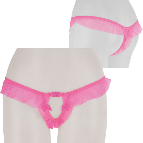 クロッチに大人の秘密♪ひらりと舞うピンクシースルーフリルのオープンショーツ。