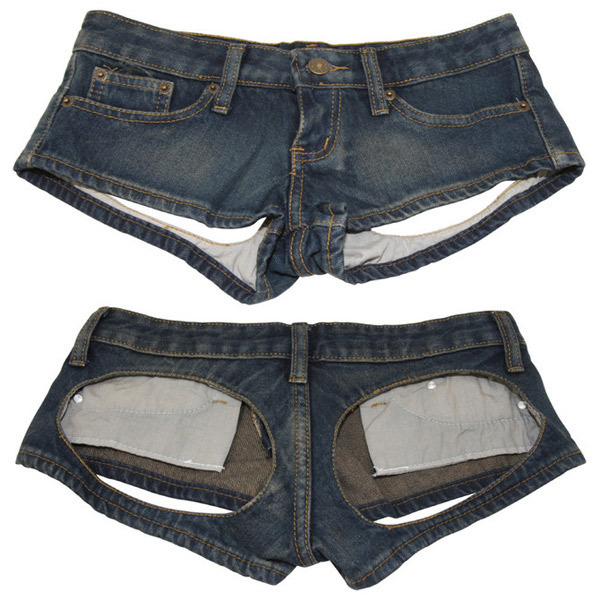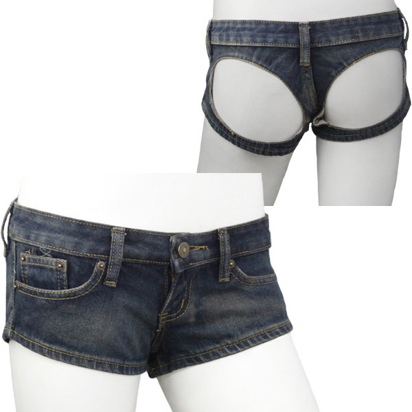 前から見ると普通のデニムパンツなのに、後ろはヒップを大胆に露出したオープンデザイン!男性の視線を釘づけにするセクシーコスチュームです。