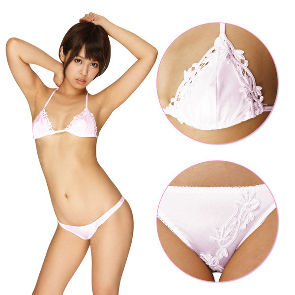 フェリカ素材の光沢感とミニマムなシルエットがセクシーなランジェリー!可愛らしいピンクカラーながら、エレガントなフラワー刺繍で品のある仕上がりです。