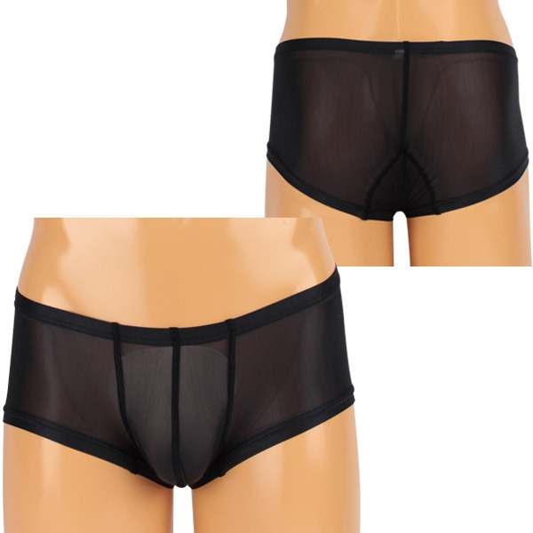 ●エロかっこよく決まるブラックカラー●極薄ストレッチ生地を使用●ボクサータイプ●フロントはゆったりめのデザインで締め付けすぎないのがポイント●メンズ用Mサイズ。