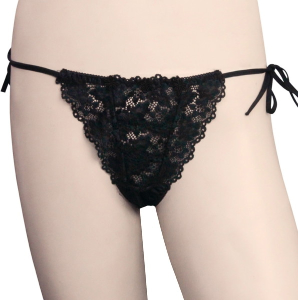 トリコット生地フラワーレース脇紐オープンTバック ブラック