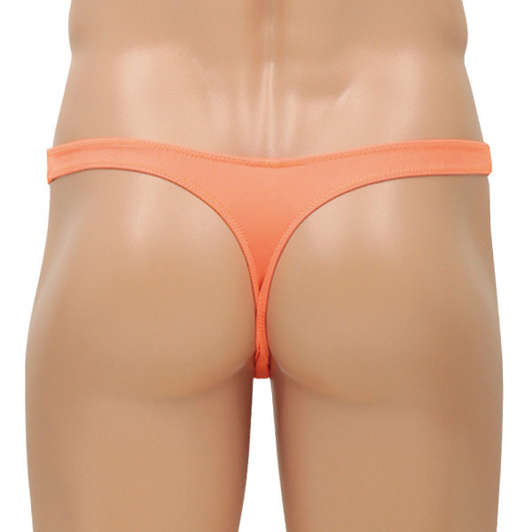 <EROX>シンプルスタイルでセクシーに魅せる大人のメンズランジェリーシリーズ!ネオンオレンジのローライズTバックショーツ「ピースメーカー」。スパンデックス5%、ポリエステル95%。