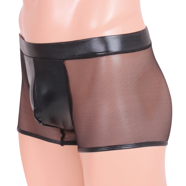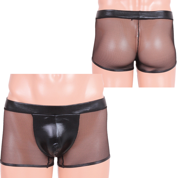 ウエストと足ぐりとフロントにメタリックファブリックを配置したトランクス。