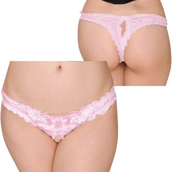 フェリカ&フラワーレース股割れオープンTバック ピンク