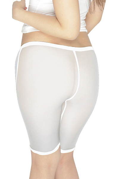 大事な部分が隠しきれない日本製スパッツ♪生地は極薄のシースルー素材を採用しており、触り心地はさらりとなめらか。
