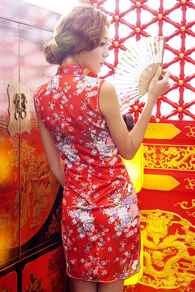 谷間を強調する胸元に思わず目がいく真っ赤なチャイナドレス!華やかな美人コーデで、ふとした仕草にも優雅さが宿ります。