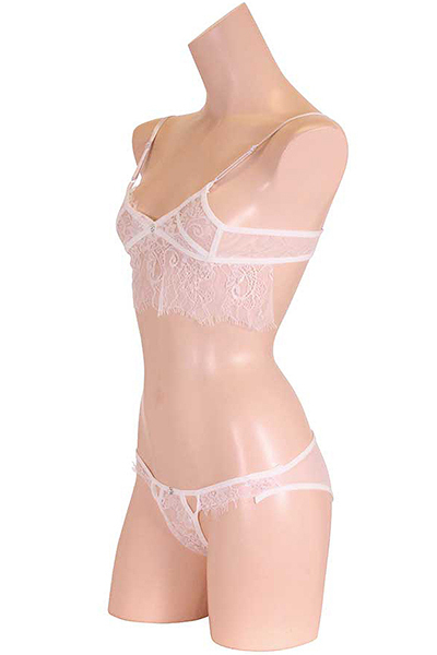 繊細に編み込まれた純白レースとキラキラストーンが女性を輝かせるブラ&ショーツ!極薄パワーネットで透明感を出しつつ、タイトなフィット感で快適な着心地も追求したセクシーランジェリー。