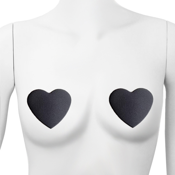 バストトップをお洒落に飾るシンプル無地のハート型ニップレス(黒)。