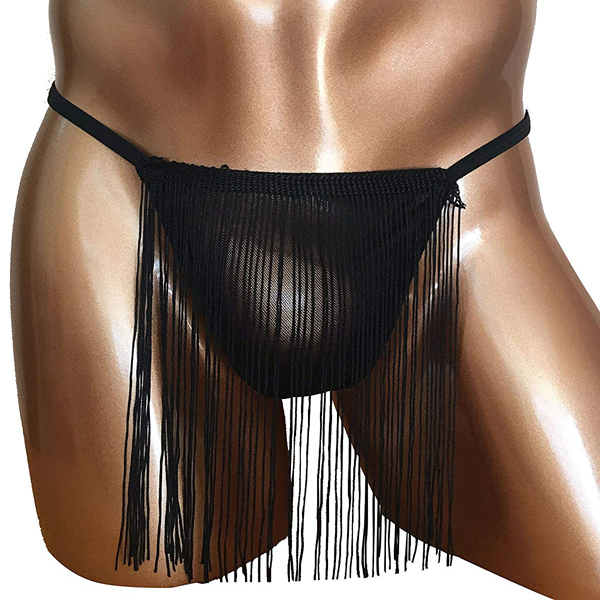 昔懐かしいふんどしが現代風に蘇る!フリンジ付のメンズ用Tバック(黒)。