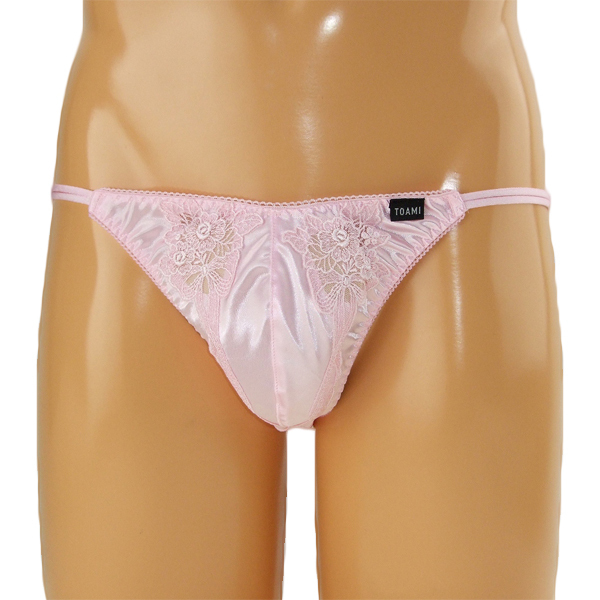 可愛いもの好きな男性に!光沢生地と花柄刺繍が美しい日本製フルバック(ピンク)。