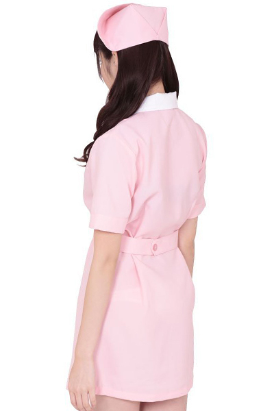淡いパステルピンクで魅力倍増♪可愛いけど、どこか大人の色気を感じさせる人気のミニ丈ナース服に大きめサイズが登場!ナースキャップが付いた本格派デザイン♪病気の時には天使のような微笑みで癒してくれそうな可愛いナースコスプレです。