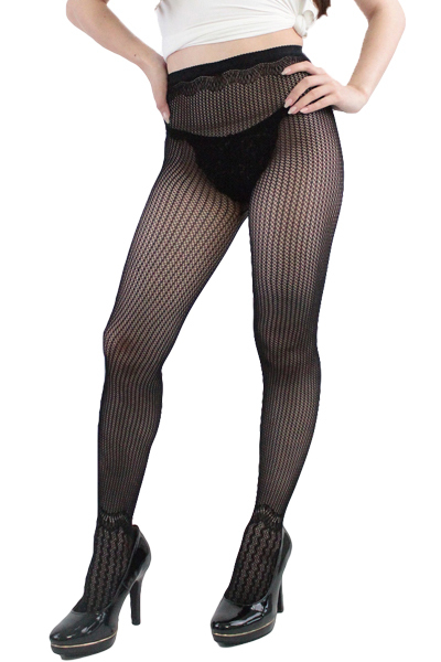 ウエスト周りと足首から爪先にかけて変化したデザインがポイント!さり気無くお洒落をアピールする黒ストッキング。