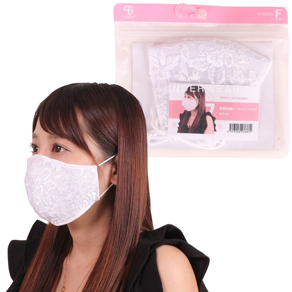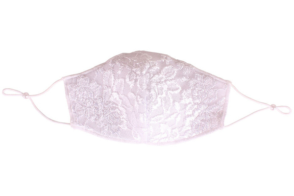 レースコーデと相性抜群!通気性の良いメッシュ地に白い薔薇刺繍レースを組み合わせたエレガントな大人用マスク。