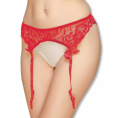 情熱的な赤が大人の色気を演出!美しいフラワーレースの定番ガーターストッキング!両サイドのリボンのワンポイントもキュート♪