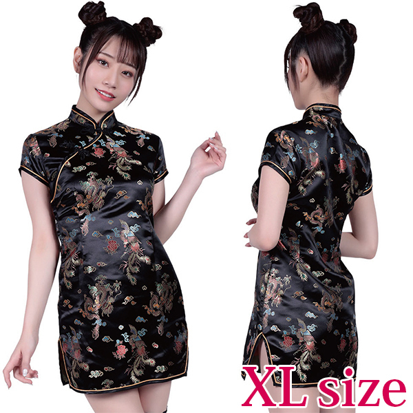 人気のミニチャイナにゆったりサイズが登場!両サイドのスリットでセクシーさが溢れ出るミニスカチャイナ。