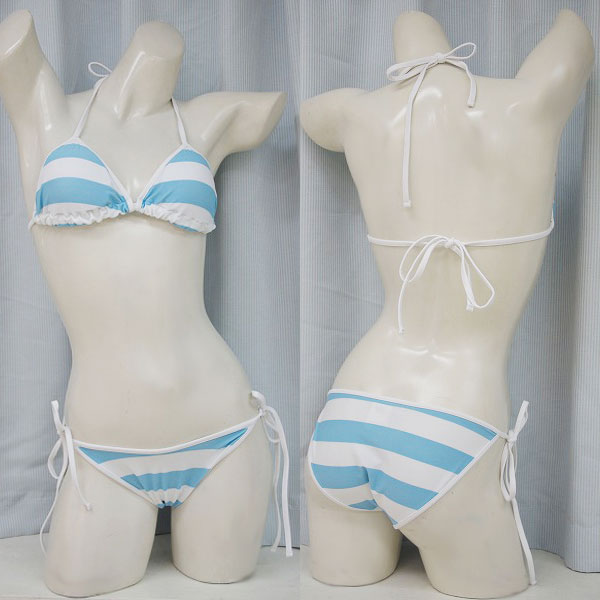 パステルカラーで萌え感たっぷり!サックス×ホワイトのボーダー柄ビキニセットが登場しました。