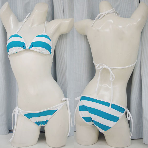 パステルカラーで萌え感たっぷり!ターコイズ×ホワイトのボーダー柄ビキニセットが登場しました。
