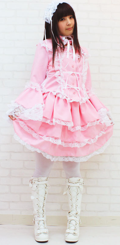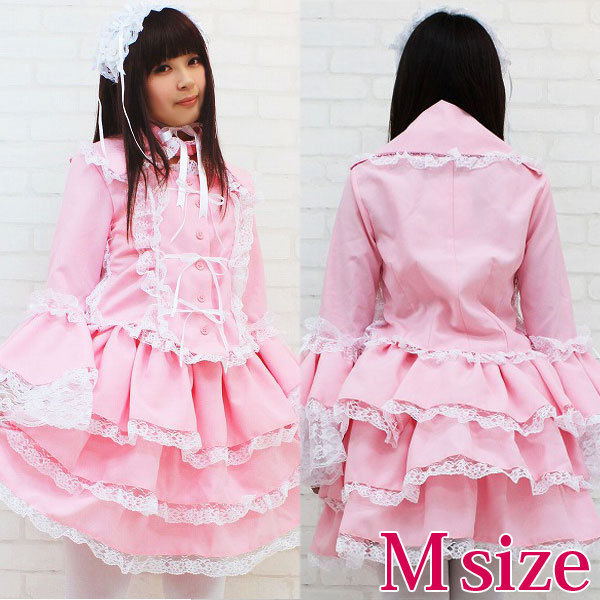 | ■サイズ/ セット内容 | Mサイズ:B〜94cm・W62〜106cm 丈:上着48cm(袖丈62cm・肩幅38cm)・スカート48cm 付け襟(首回り)40cm セット内容:上着(前ボタン)・スカート(ウエスト部分ゴム、スカート3枚仕立て、裏地付き、チュールパニエ付き)・付け衿(ボタンにて着脱可)・ヘッドドレス | ||