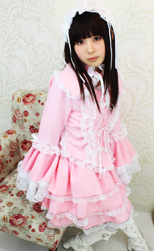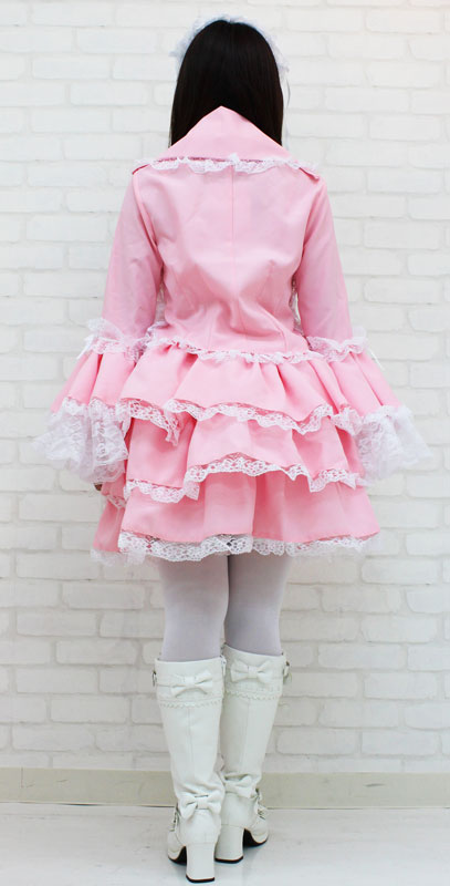たっぷりのフリフリレースでボリューム感を持たせた、ピンクのチュールメイド服(BIG)。