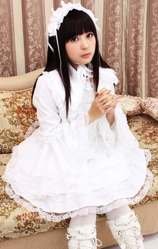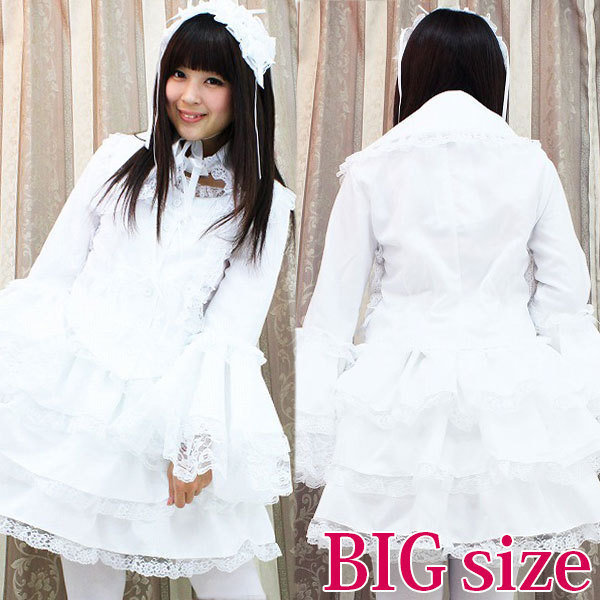 たっぷりのフリフリレースでボリューム感を持たせた、真っ白なチュールメイド服(BIG)。