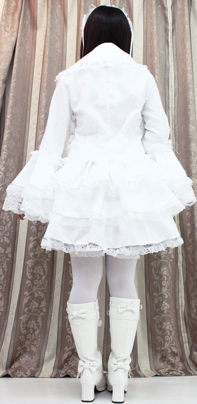 | ■サイズ/ セット内容 | Mサイズ:B〜100cm・W73〜126cm 丈:上着53cm(袖丈65cm・肩幅41cm)・付け襟(首回り)43cm・スカート50cm セット内容:上着(前ボタン)・スカート(ウエスト部分ゴム、スカート3枚仕立て、裏地付き、チュールパニエ付き)・付け衿(ボタンにて着脱可)・ヘッドドレス | ||