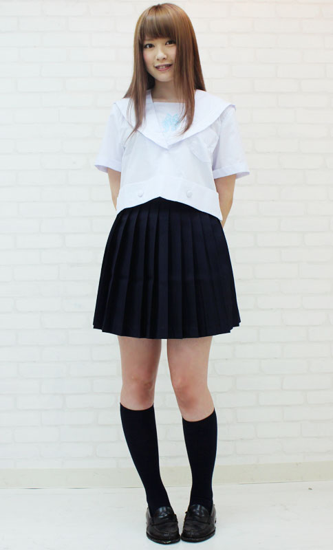 胸元にある水色の刺繍が涼やかな、白セーラー&濃紺スカートの制服コスプレセット。