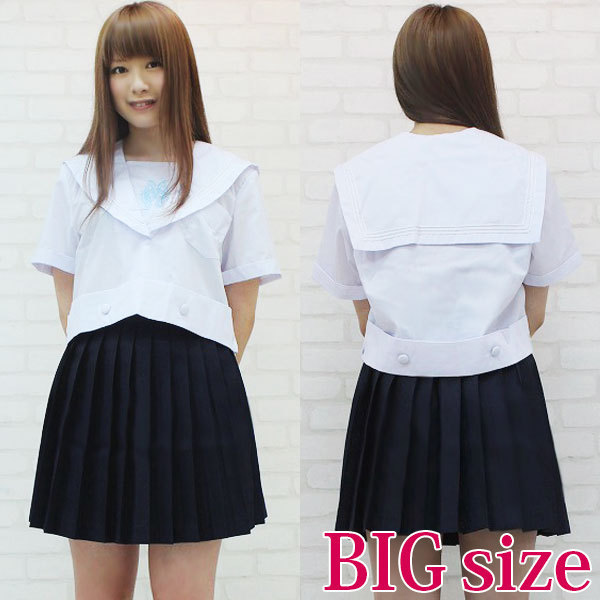 白&濃紺のコントラストは、まさに鉄板!憧れのお嬢様になれちゃう、大きめサイズのセーラー服コスチュームです!