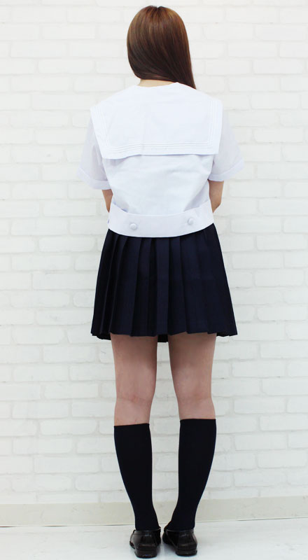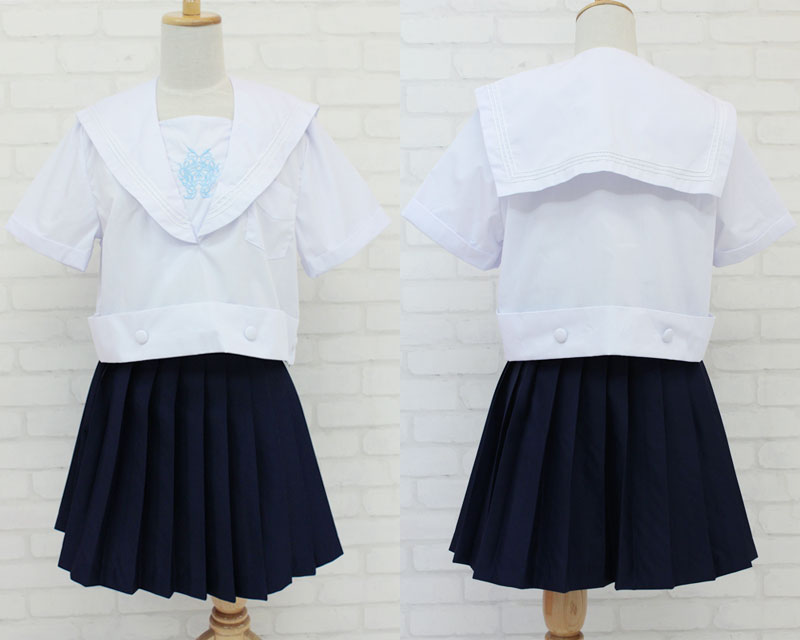 胸元にある水色の刺繍が涼やかな、白セーラー&濃紺スカートの制服コスプレセット(BIG)。