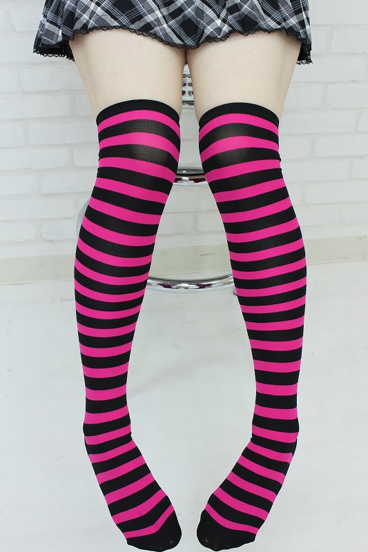 コスチュームのアクセントに!ピンク×ブラックのボーダー柄ニーハイ。