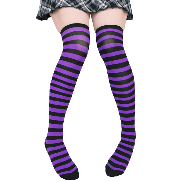 コスチュームのアクセントに!パープル×ブラックのボーダー柄ニーハイ。