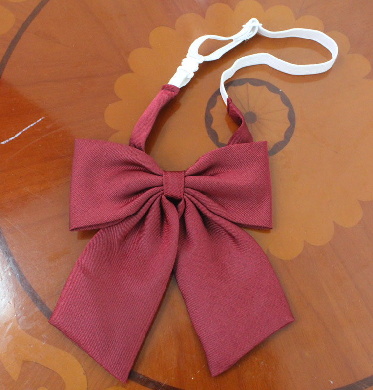 | ■サイズ/ セット内容 | フリーサイズ 本体:首周り長さ38〜50cm(ゴム最大86cm) セット内容:スクールリボン単品(白い留め具、ゴム紐で長さ調整可) | ||