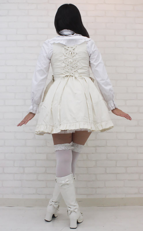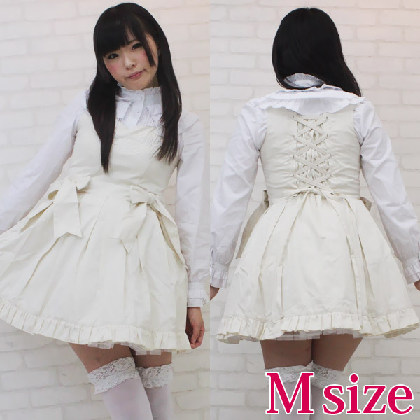 | ■サイズ/ セット内容 | Mサイズ:B78〜86cm・W62〜74cm 丈:ジャンパースカート76cm・ブラウス49cm(肩幅36cm、袖丈61cm、袖口20cm) セット内容:ジャンパースカート(横ファスナー、後ろ編み上げシャーリング、パニエ内蔵)・ブラウス(前ボタン、後ろ編み上げシャーリング) | ||
