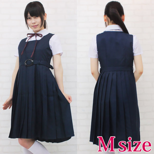 長めのスカート丈で清楚な印象!ジャンパースカートタイプの制服コスプレ(M)。