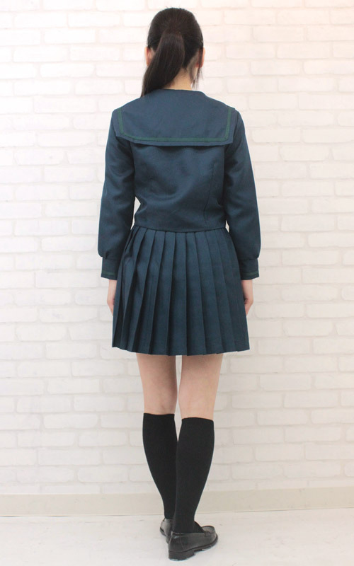 憧れのお嬢様風制服コスプレ!緑のラインが入った可愛らしい冬服セーラー服(M)。