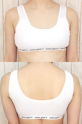 キュートガールに変身!純白リブ編み仕様のリアルなスポーツブラ単品(M)。