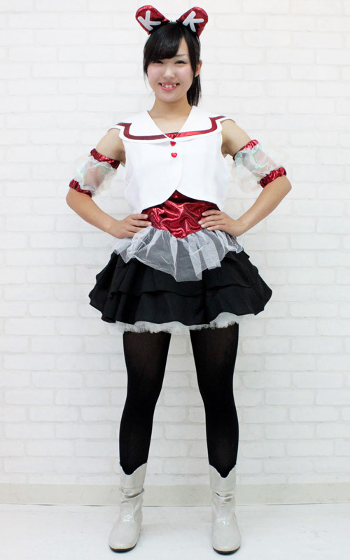 | ■サイズ/ セット内容 | Mサイズ:B75〜88cm・W58〜69cm 丈:上衣38cm・インナー前身頃丈(チュール部分を含まず)40cm(チュール13cm)・スカート35cm・パニエ37cm・アームカバー(腕囲)約34cm セット内容:上衣(前ボタン)・インナー(サイドファスナー)・スカート(ボタン留め、一部ゴム入り)・パニエ・アームカバー・カチューシャ | ||