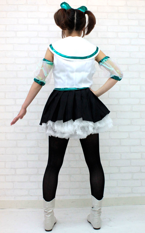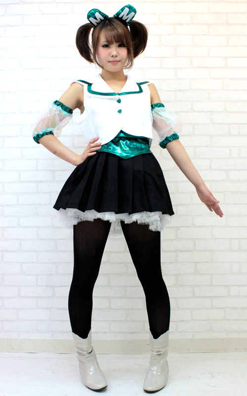 光沢のあるインナーに、ミニ丈の襟付きベストがマッチ!アームカバー、カチューシャにパニエまで付属した、アイドル衣装のセットです。