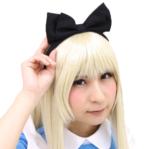 コスチュームや私服のファッションアイテムとして、あると便利なリボンカチューシャ(黒)。