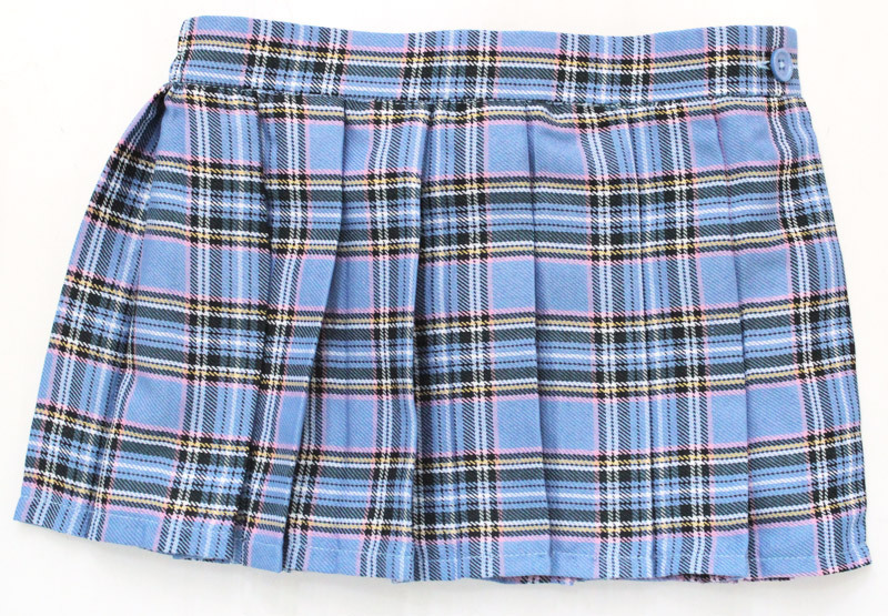 元気いっぱい!爽やかなブルーに格子が入った、BIGサイズの超ミニ丈チェックスカート。