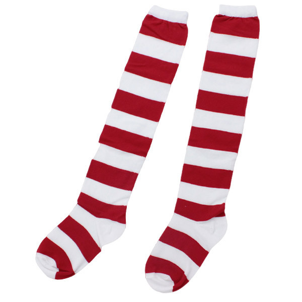 私服のファッションアイテムのひとつとしても、コスプレのお供としても使える、赤×白ボーダーが可愛いニーハイソックスです。