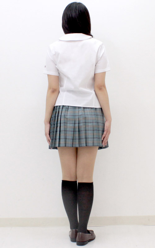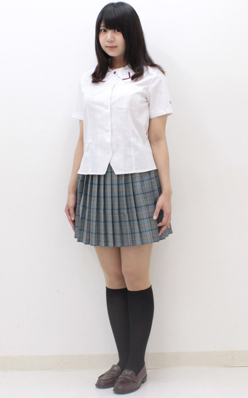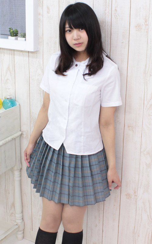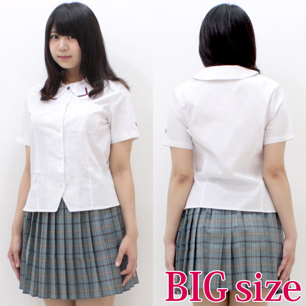 真っ白な半袖シャツとプリーツスカートで爽やかに!夏服仕様の制服コスプレ(BIG)。
